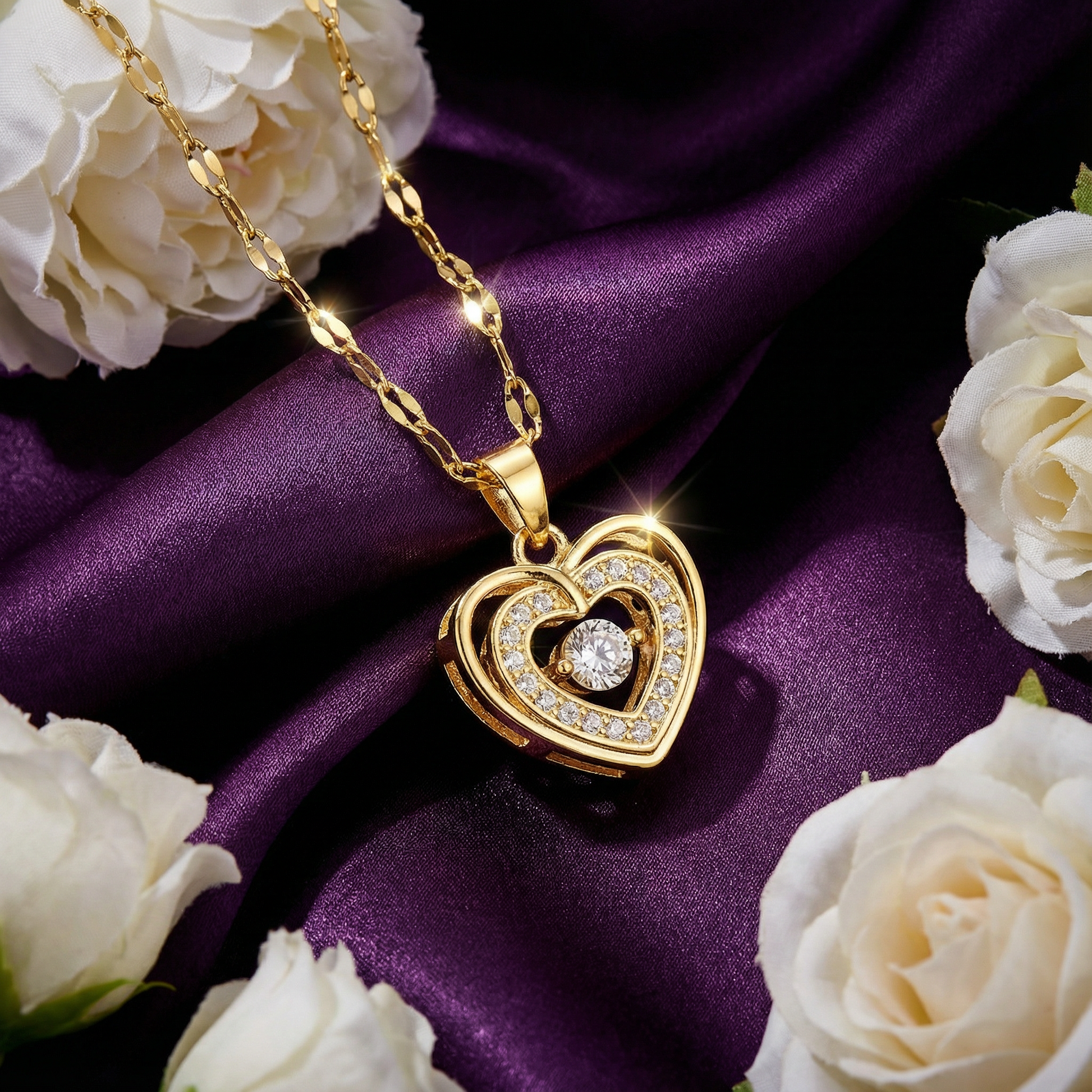 - Matière: Un cœur délicatement plaqué or, monté sur une maille lèvres en acier 316L, alliant éclat durable et respect des peaux sensibles.
